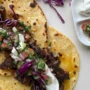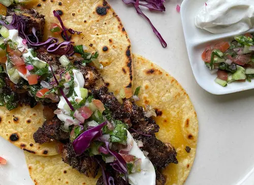 Corn tacos, chicken, chimichurri, sour cream & salsa